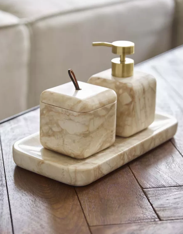 Серія Blake - це вишукана лінійка аксесуарів для ванної кімнати, яка поєднує в собі натуральний камінь, ручну роботу та сучасну естетику. Ось основні характеристики та переваги: