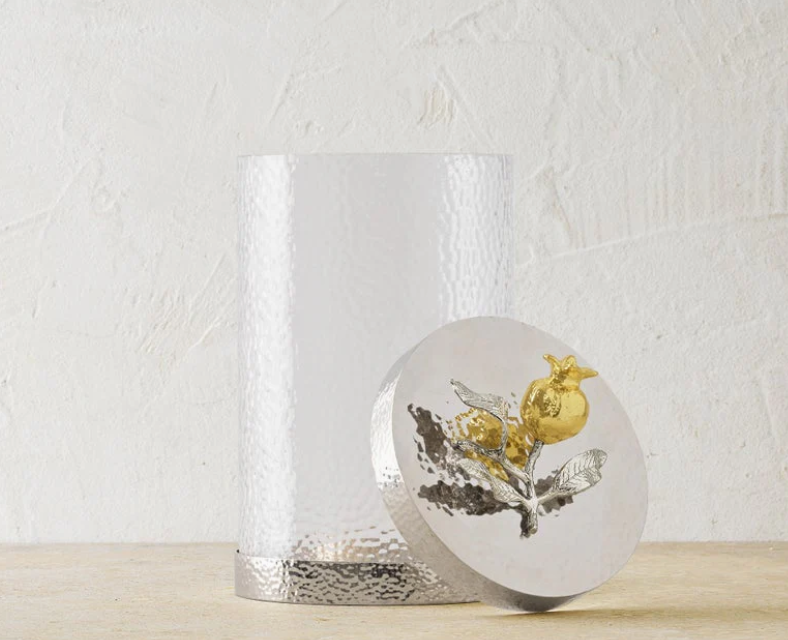 Цей великий декоративний контейнер із колекції Pomegranate від Michael Aram втілює символіку життя, родючості та оновлення, притаманну мотивам граната. Витончена поєднанння нікель-покриття з золотистими деталями створює розкішний художній образ, а продумана форма робить предмет не лише декоративним, а й функціональним елементом вашого дому. Контейнер чудово впишеться у святковий або щоденний інтер’єр - як самостійний арт-об’єкт або як стильний аксесуар для сервірування й зберігання.