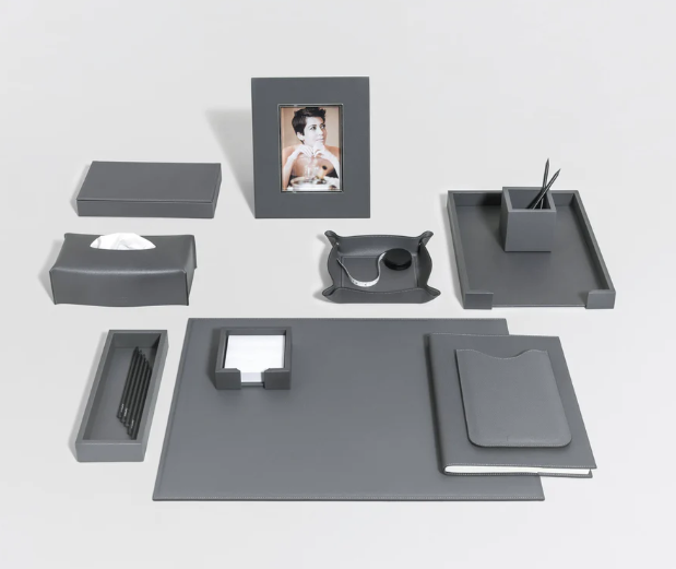 Міцна дерев’яна основа, вкрита високоякісною телячою шкірою, стійкою до подряпин, яка завдяки чітким формам і класичному дизайну робить склянку для олівців ідеальною для будь-якого стилю письмового столу. Поєднуйте його з іншими нашими офісними аксесуарами, щоб організувати та прикрасити свій стіл.
