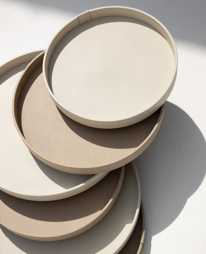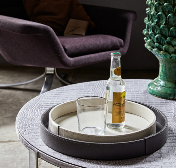 Pinetti Таця GEA ROUND 027-CREAM LIVERPOOL шкіра 1418.029.027 Італія DIAM.40CM(р)
