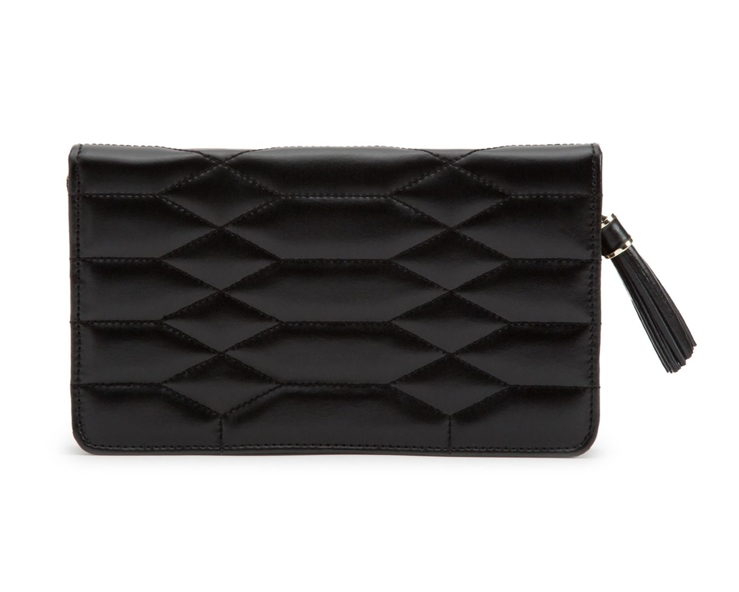 Шкіряна скринька-клатч Caroline від WOLF - фірмова ювелірна валізка, що відрізняється своєю стьобаною обробкою, функціональністю і класичною формою. Ідеально підходить для зберігання прикрас та подорожей. LusterLoc™: дозволяє тканині, що обшиває внутрішню частину футлярів для ювелірних виробів, поглинати агресивні гази, які, як відомо, спричиняють потемніння. За типових умов зберігання, він може запобігти потемнінню до 35 років.