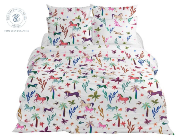 TESSITURA TOSCANA К-кт постільної білизнни AGNES (РОЖЕВІ ПОНІ) 155*200/2Х50*70/260*280 NATURALE WHITE 100% бавована 250044 Італія