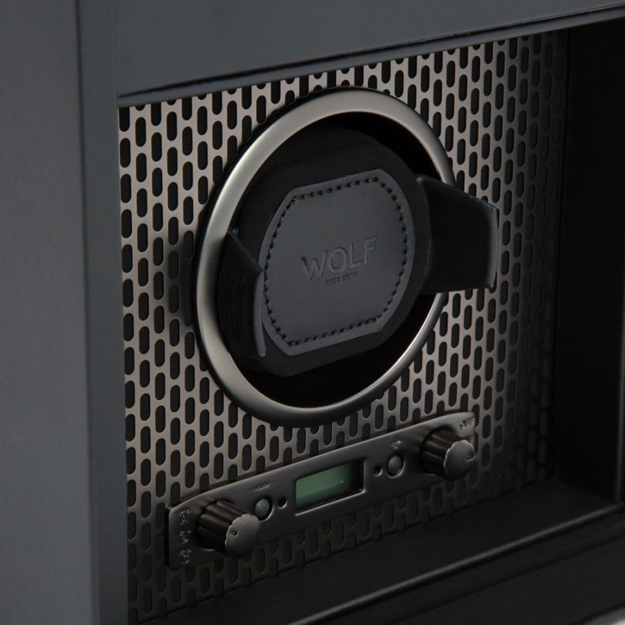 WOLF Axis Single Winder with Storage - Powder Coat Black - Powder Coat 100% екошкіра 469203 Німеччина 20cm L x 21cm W x 23cm H(р)