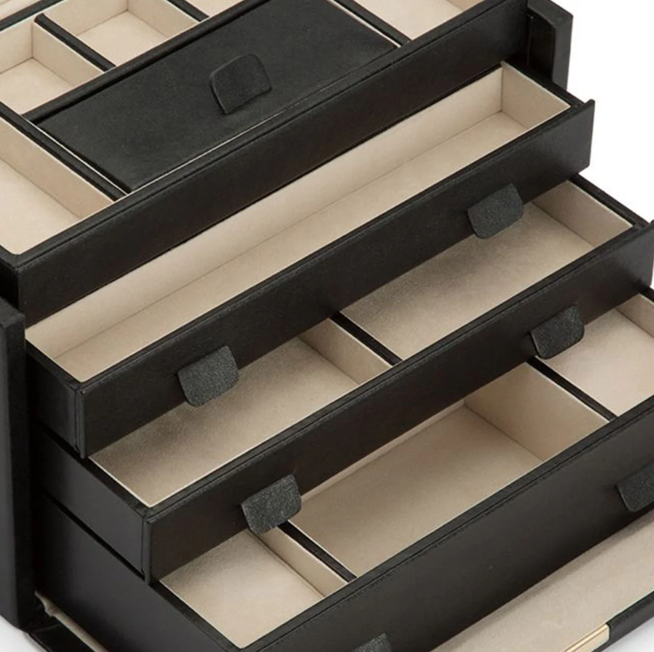 Сринька з колекції Palermo - це елегантна та функціональна шкатулка для зберігання прикрас і годинників. Високоякісні матеріали та золотиста фурнітура роблять її справжньою окрасою будь-якого інтер’єру.
