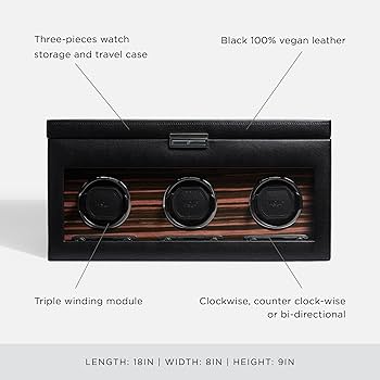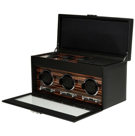 Ця модель розрахована на 3 автоматичні годинники і створена для того, щоб зберігати їх у постійній готовності до носіння, підтримуючи механізм у безперервному русі й запобігаючи зупинці.